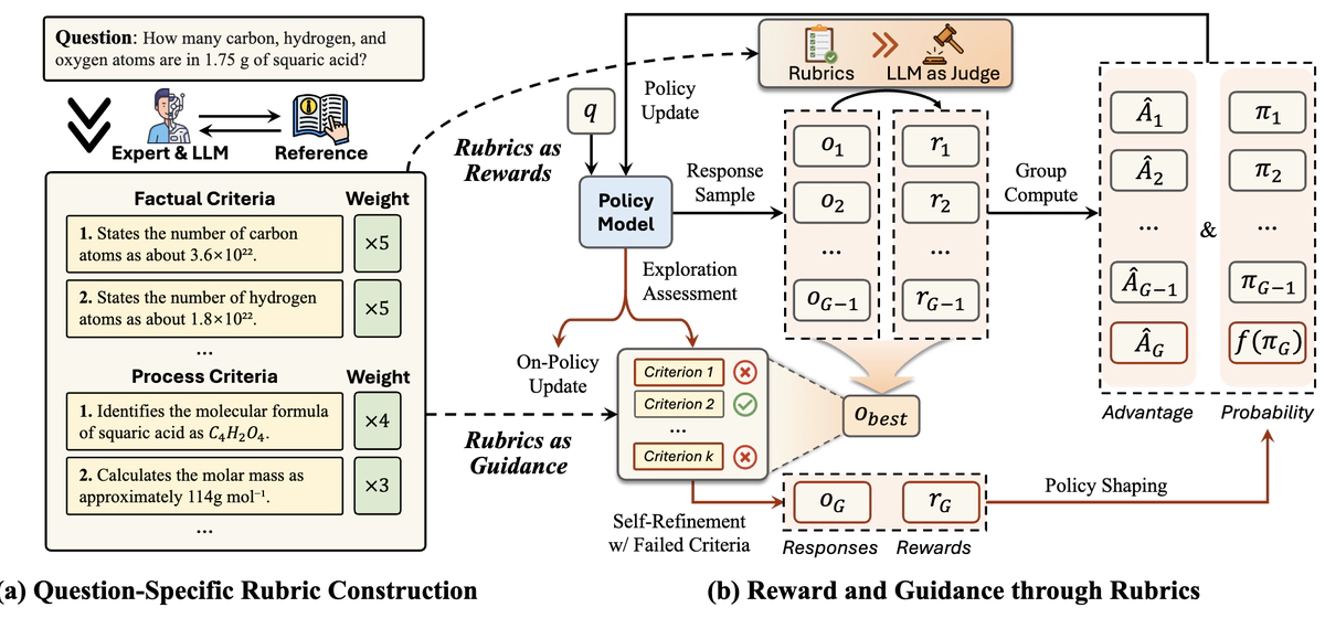 Reward and Guidance through Rubrics: Promoting Exploration to Improve Multi-Domain Reasoning