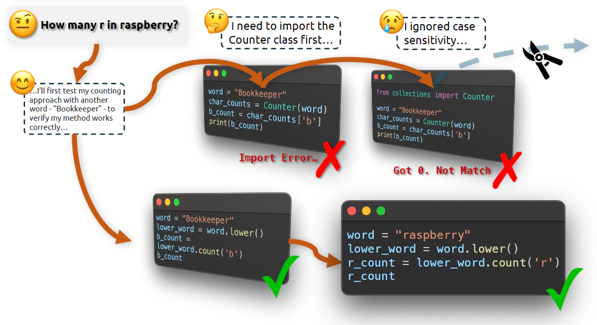 Large Language Models (LLMs) have made remarkable breakthroughs in reasoning, yet continue to struggle with hallucinations, logical errors, and inability to self-correct during complex multi-step tasks. Current approaches like chain-of-thought prompting offer limited reasoning capabilities that fail when precise step validation is required. We propose Environment Augmented Generation (EAG), a framework that enhances LLM reasoning through: (1) real-time environmental feedback validating each reasoning step, (2) dynamic branch exploration for investigating alternative solution paths when faced with errors, and (3) experience-based learning from successful reasoning trajectories. Unlike existing methods, EAG enables deliberate backtracking and strategic replanning through tight integration of execution feedback with branching exploration. Our a1-32B model achieves state-of-the-art performance among similar-sized models across all benchmarks, matching larger models like o1 on competition mathematics while outperforming comparable models by up to 24.4 percentage points. Analysis reveals EAG’s distinctive scaling pattern: initial token investment in environment interaction yields substantial long-term performance dividends, with advantages amplifying proportionally to task complexity. EAG’s theoretical framework demonstrates how environment interactivity and systematic branch exploration together establish a new paradigm for reliable machine reasoning, particularly for problems requiring precise multi-step calculation and logical verification.